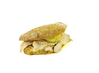 Milano broodje met slamix, huisgemaakte kerrie saus, kipfilet en ananas.