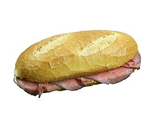 Pistolet belegd met boter en rosbief.